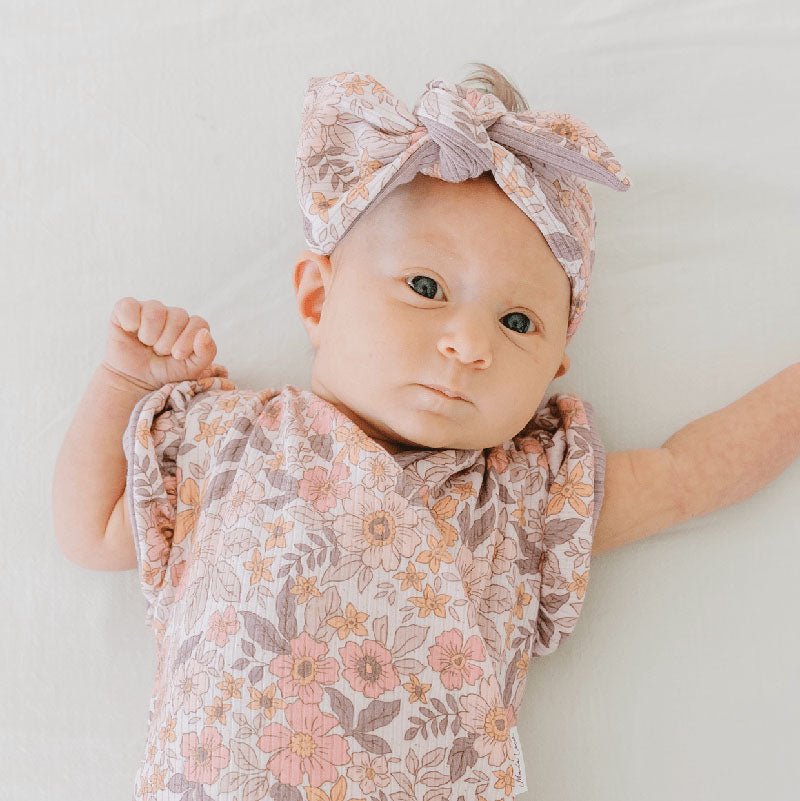 Headwrap with bow in snuggly soft fabric.