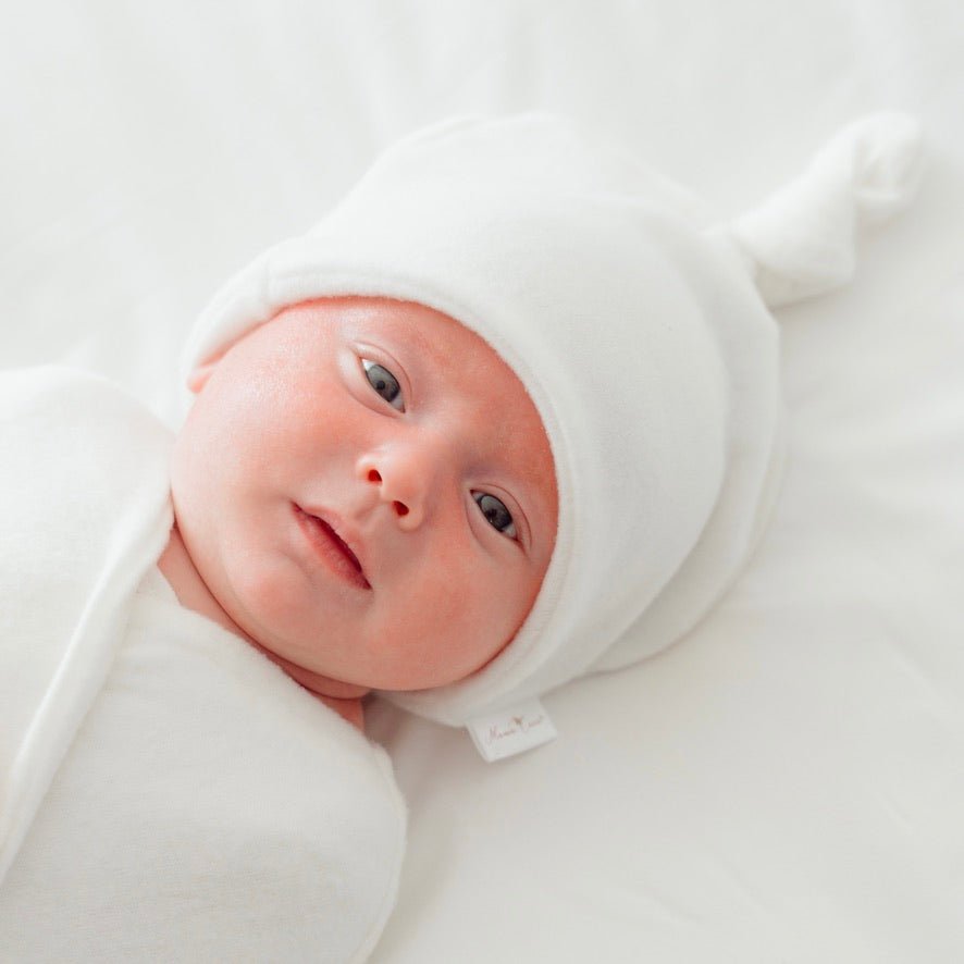 Simple, stretchy design with adjustable top knot ensuring the perfect fit to keep your sweet babe cozy.