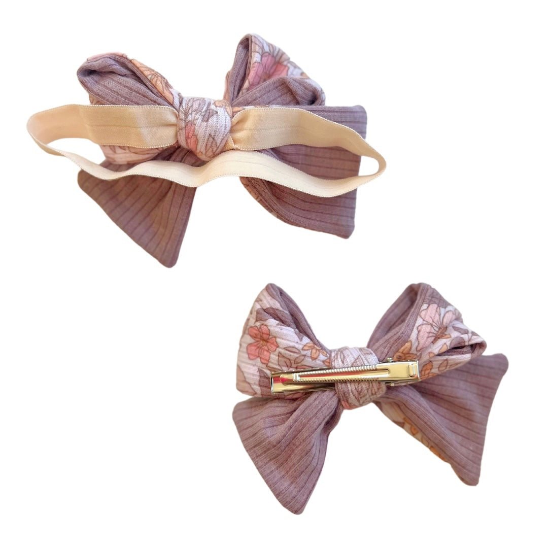 Matching headband and bow clip set. The set includes: